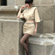 Product description: Reversible Shirt: Matte silk-finish twill in light beige Symmetrical design with identical front and back Silver snap buttons Trousers: Snow-textured twill fabric (moss gray). High-waisted design with a soft built-in metal frame for shape support (anti-warp), back zipper closure. Size: FIT Material: No Elastic