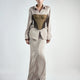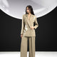 Product description: Vest: Moss ash brushed twill khaki combined with heat-pressed dark brown twill Non-warping underwire support (comfortable) with padded shoulders Deep crossover front design Trousers: Earth-brown twill Pleated detailing running from waistband to hem Size: FIT Material: No Elastic