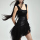 Product description: Bordeaux red quin silk Two-layer mesh lining (gilet style) for body support Built-in ruched shorts with 4-way stretch Side zipper Side placket with snap button closure Size: FIT Material: No Elastic